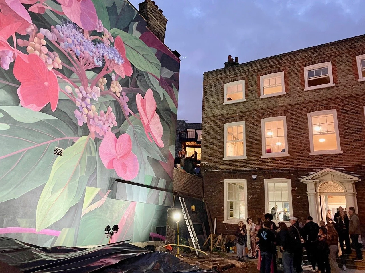 Unveiling on 23 September 2023 of the mural by Brazilian artist Thiago Mazza (depicting Hydrangea aspera “Hot Chocolate”), commissioned by Elizabeth Prochaska and Duncan Clark. @that_house_on_mare_street @mazzolandia